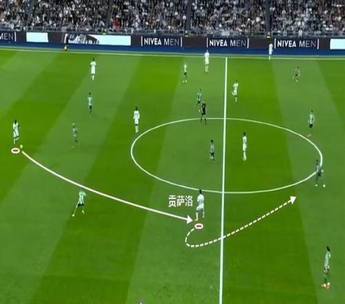 這一次就是貢薩洛回撤到很深的位置來(lái)接應(yīng)自己的中衛(wèi),他的跑動(dòng)習(xí)慣是很好的。