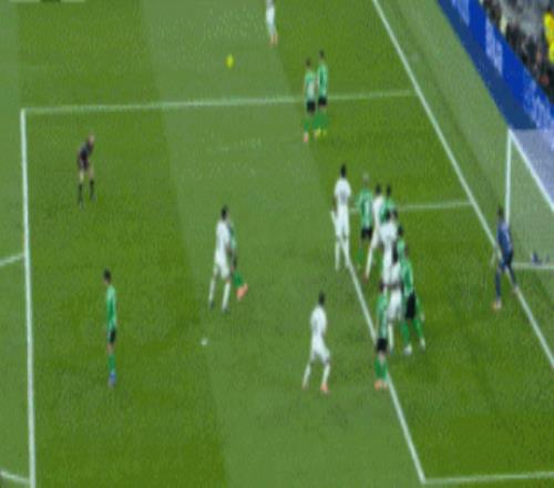 對(duì)戰(zhàn)貝蒂斯的第一個(gè)進(jìn)球,可以看到皇馬在主罰定位球時(shí)威脅一直很大,只是頭球得分點(diǎn)這2年比以前會(huì)少一些。
