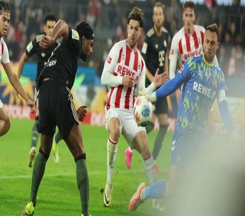 時(shí)隔兩個(gè)多月之后再次造訪萊茵能源球場,拜仁似乎并沒有完全吸取上一次的教訓(xùn),又一次首先失球。德國杯的時(shí)候是因?yàn)榉朗亟乔虺霈F(xiàn)漏洞,被科隆中鋒阿赫在第31分鐘時(shí)首開紀(jì)錄。而這一回則是在第41分鐘時(shí)因連串個(gè)人失誤而失守:格納布里前場左肋斜塞被湯姆·克勞斯擋住,格納布里重新停球后一不留神就被邁納從側(cè)后方卡位搶斷。以速度見長的邁納立即帶球奔襲超過60米,而這一路若納唐·塔一直往后退退退,并未及時(shí)上前施壓,于是邁納最后得以在禁區(qū)弧內(nèi)拔腿勁射。而最后一個(gè)出現(xiàn)失誤的是諾伊爾,面對邁納這腳時(shí)速達(dá)到106.75公里但角度很正的射門,他用雙掌一擋還是讓球撞入了網(wǎng)窩。