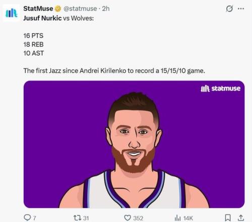 除了兩大新星之外,爵士隊(duì)之所以能夠完成爆冷也與內(nèi)線老將努爾基奇的爆發(fā)有關(guān),本場努爾基奇11中7爆砍16分18板10助三雙數(shù)據(jù),外加1斷1帽。