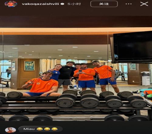 體育播報1月23日宣 今日,泰山隊外援卡扎伊什維利更新社媒,曬出和隊友一同在健身房訓練的照片??死咨T谠u論區(qū)搞怪評論“喵”。