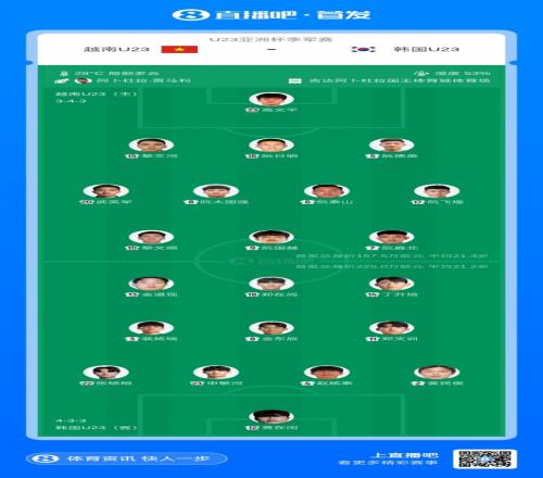 體育播報01月23日宣 北京時間今晚23點,U23亞洲杯三四名決賽,越南U23vs韓國U23,賽前兩隊公布了首發(fā)陣容。
